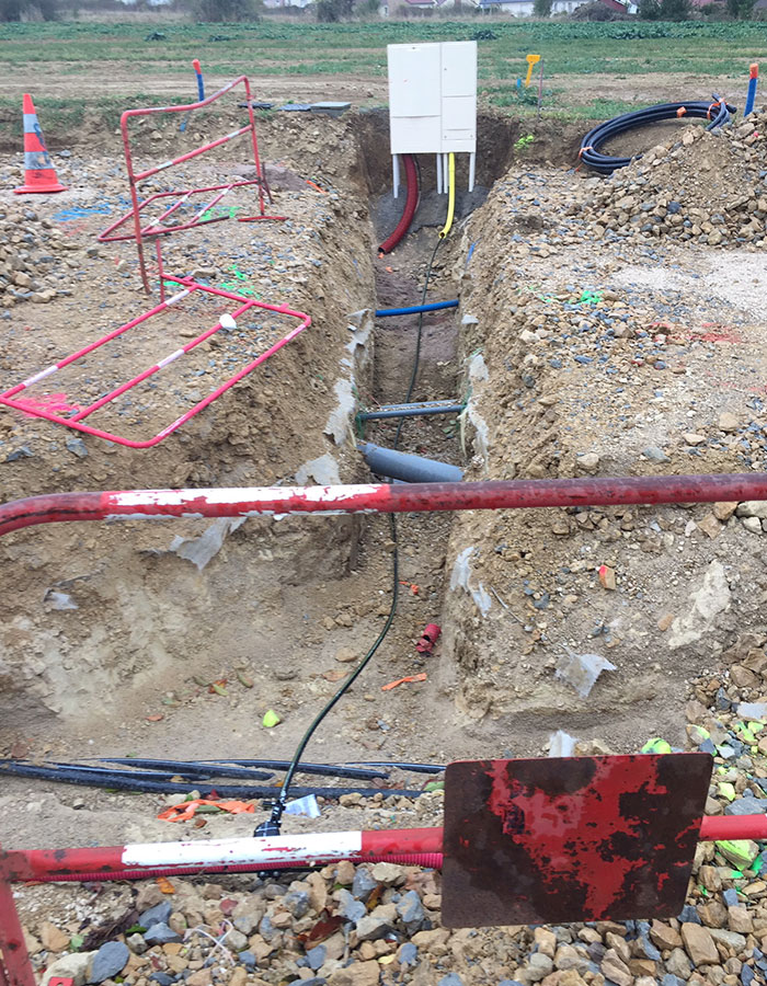 Des travaux d'enfouissement des réseaux électriques, de l'éclairage public et du réseau de communications électronique en cours rue de la Gare et rue Basse des Pâquis à Gespunsart. Ils doivent durer jusqu'à la fin de l'année.