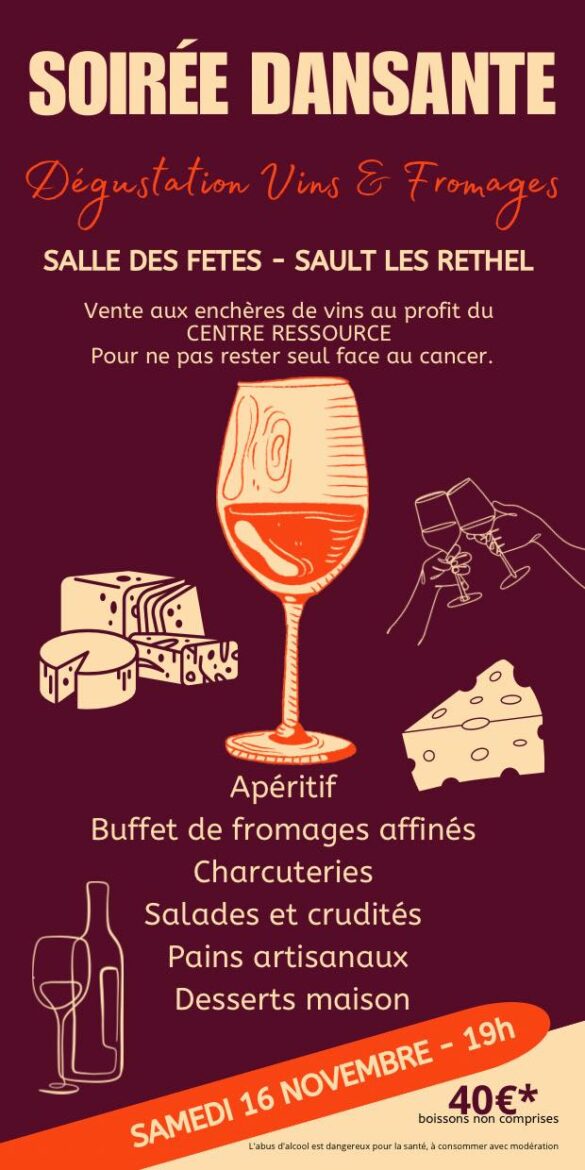 Rendez-vous samedi pour la 4ème édition de la soirée dansante et dégustation de vins et fromages organisée par le Rotary club à la salle des fêtes de Sault-lès-Rethel. Les bénéfices seront reversés au Centre ressource de Reims.