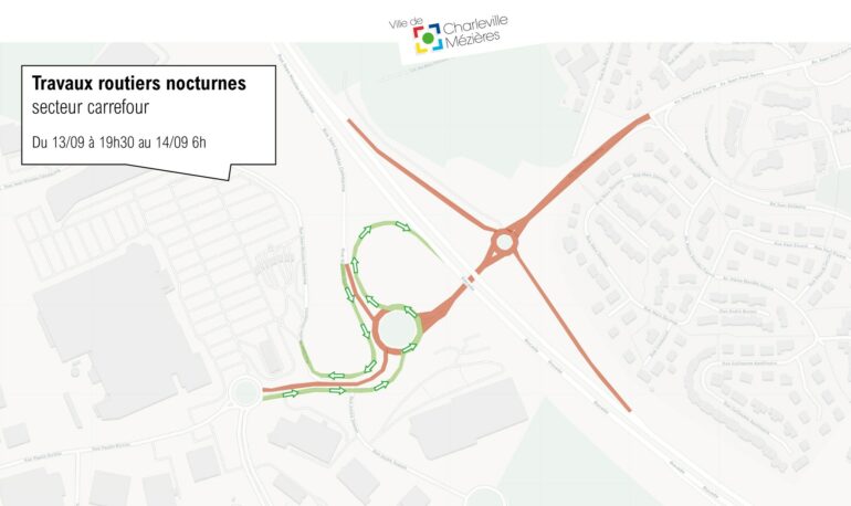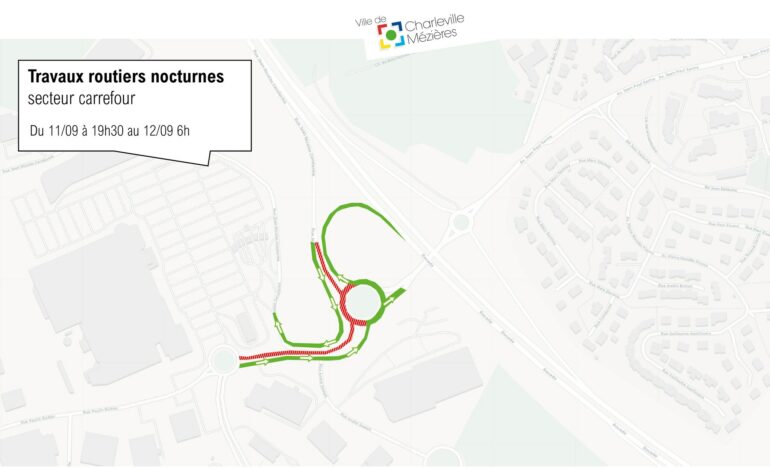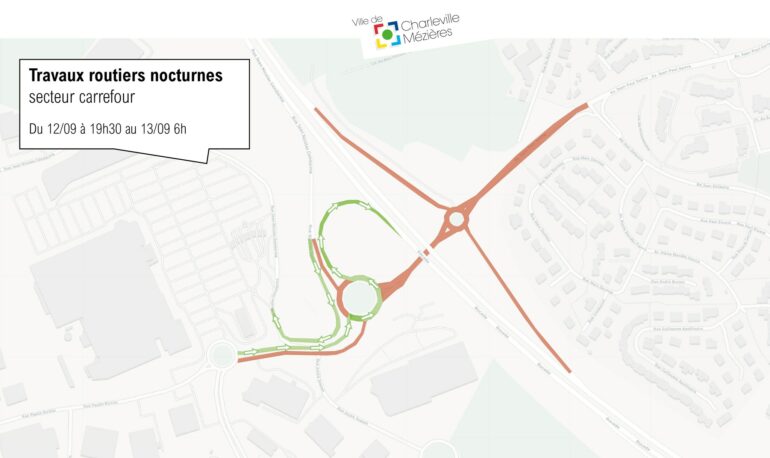 Du 11 au 14 septembre, de 19 h 30 à 6 h du matin, la circulation sera modifiée au niveau du rond-point et dans les voies d’accès et de sortie de la zone.